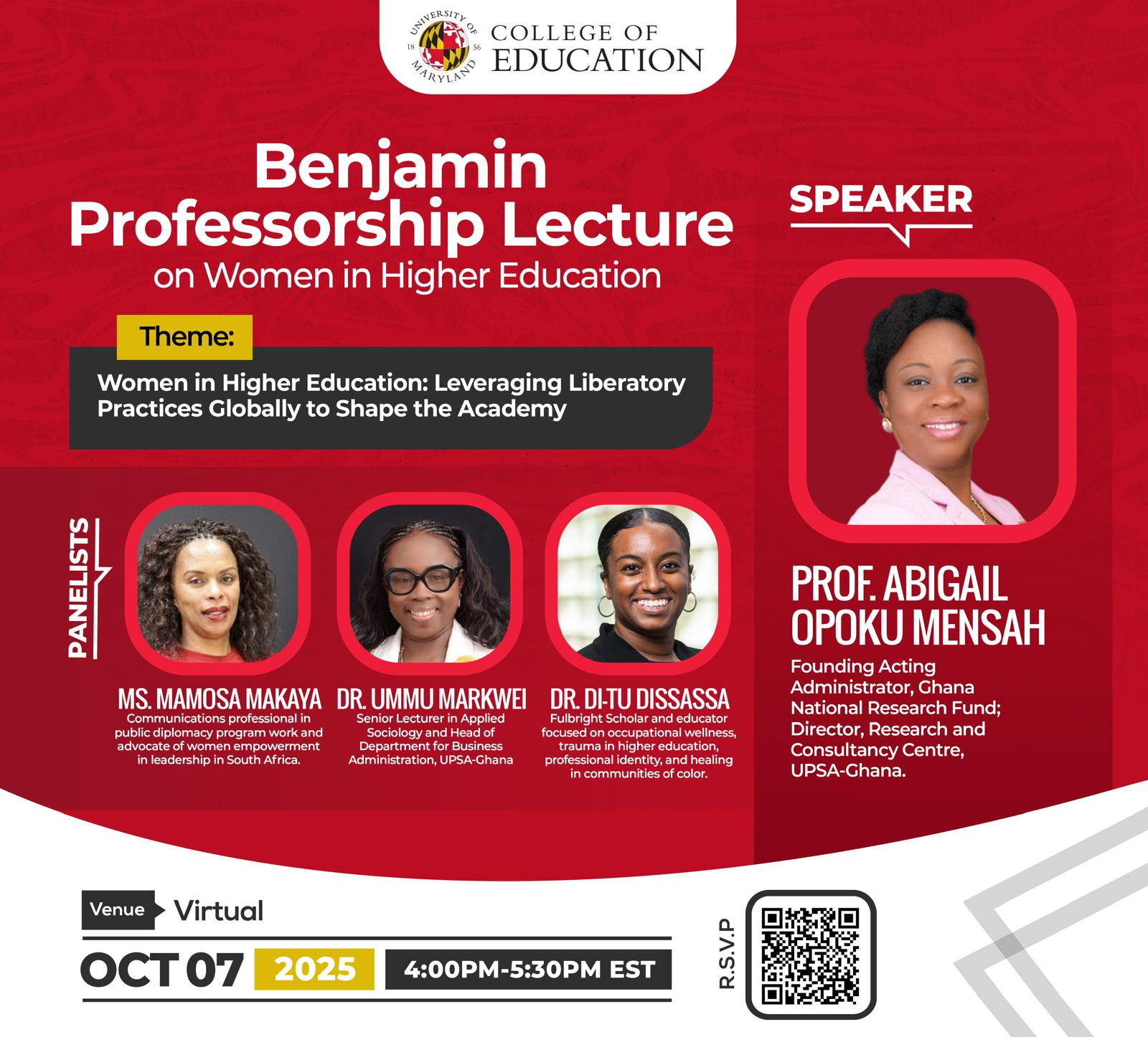 Join the University of Maryland, College of Education for the Harold R. W. Benjamin Professorship Lecture on October 7 at 4 p.m. EST via Zoom.